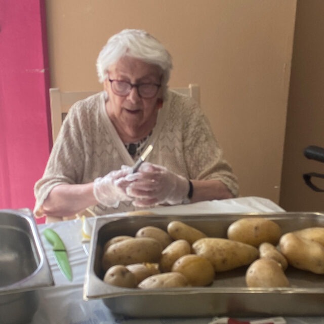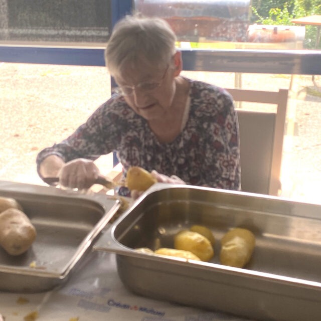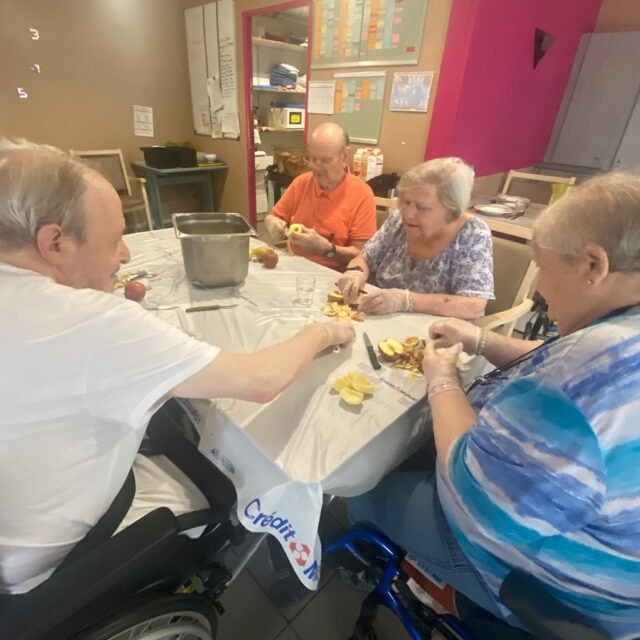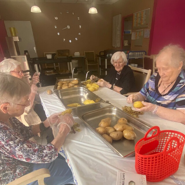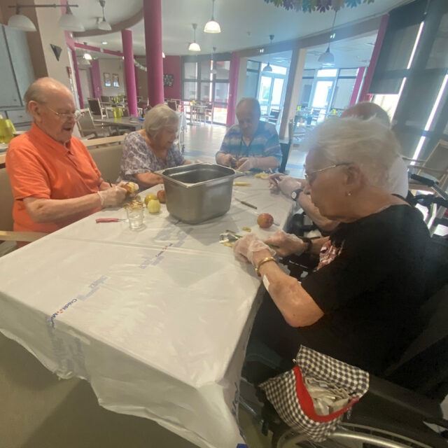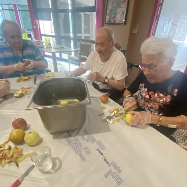 À l’EHPAD Saint-Jean Baptiste, on met la main à la pâte ! Les résidents participent avec plaisir à des ateliers d’aide à la préparation des repas. Ces moments gourmands sont l’occasion de partager de créer des liens autour du plaisir de cuisiner ensemble.