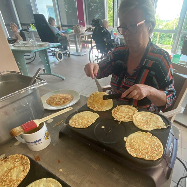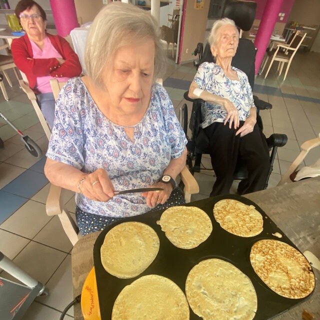 Après avoir concocté la pâte, les résidents ont pu se délecter des délicieuses crêpes préparées. Les familles et les salariés ont également pu en profiter.