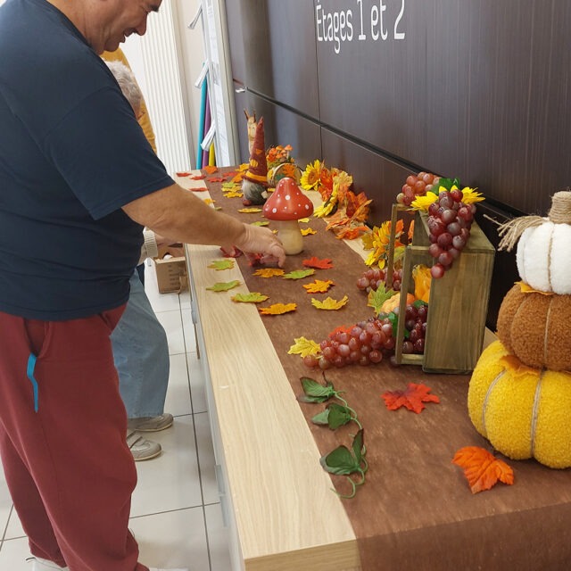 Les feuilles remplies de couleurs, le raisin des vendanges, les champignons, tout est prêt pour accueillir l’automne à Sainte Claire ! Les résidents ont mis le cœur à l’ouvrage, soucieux de chaque détail pour embellir leur lieu de vie.