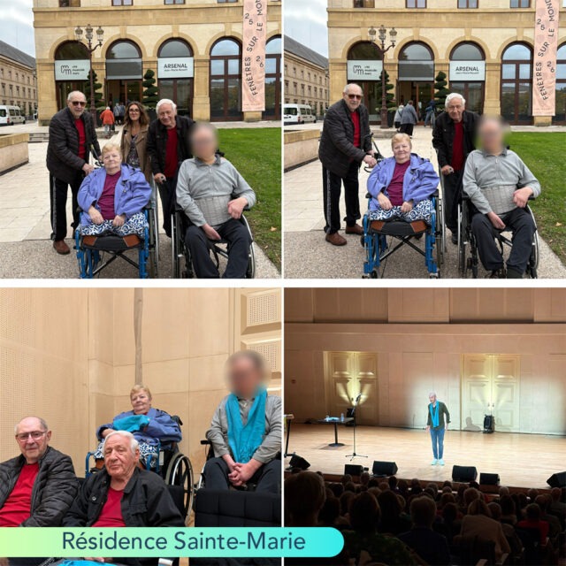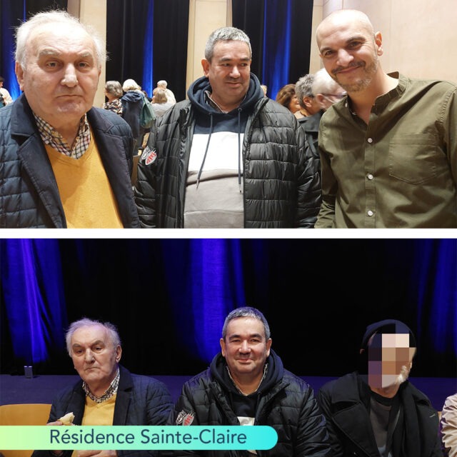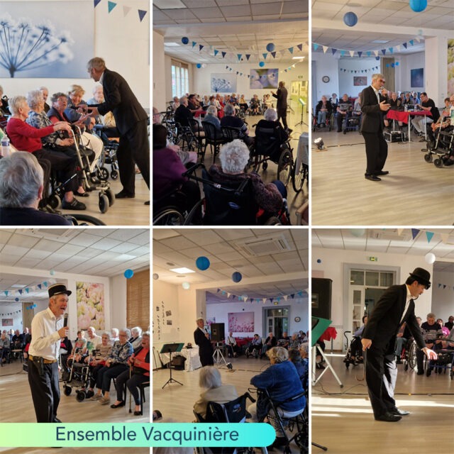 Plus tard, ils ont également assisté au spectacle de l’imitateur Martial Ravenel. Avec son show « Cent voix en l’air » (quel jeu de mots !), il a fait voyager les résidents à travers les époques et les générations de chanteurs. Entre rires, souvenirs et émotions, ce spectacle a réveillé la mémoire musicale de chacun, tout en créant un pont entre les générations.