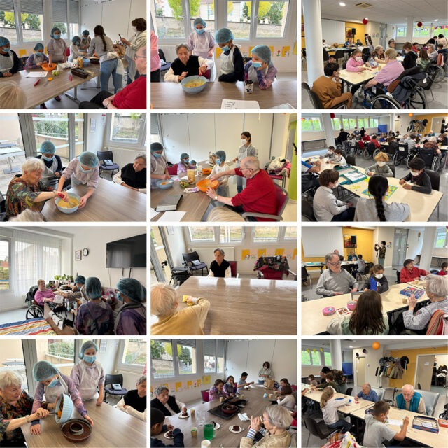 Les enfants de l’IME Espérance sont également venus pour un atelier pâtisserie. Ensemble, résidents et enfants ont préparé et dégusté un délicieux gâteau au chocolat ! Chacun a mis la main à la pâte : de la réalisation de la recette jusqu’au rangement. Un beau moment de partage, de convivialité et de gourmandise !