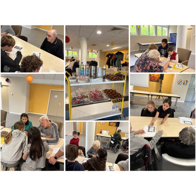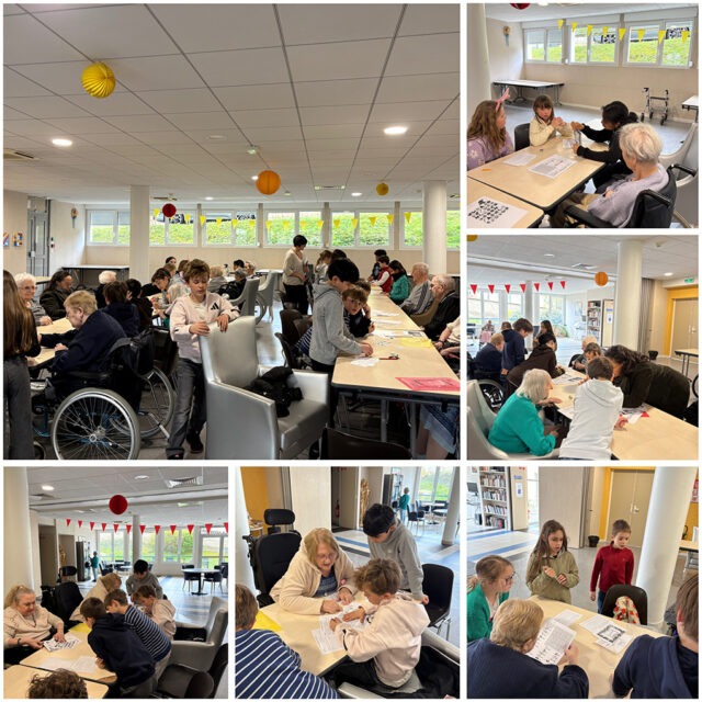 Les enfants de l’école de la Salle ont rendu visite aux résidents de Sainte-Marie pour un après-midi escape game*. Résidents et enfants ont formé des équipes pour résoudre le plus rapidement possible les 9 énigmes.